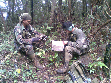 ポステラバレー州NPA活動地域でパトロール中のA少尉(右)