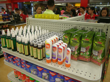 多くの種類が販売される蚊よけ商品=首都圏マンダルーヨン市の商業施設で写す