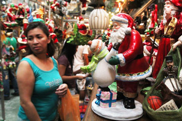 首都圏ケソン市サンタテレシタのダピタン通りには、サンタクロースの人形、きらびやかな造花などが売られる一角があり、クリスマスの飾り付けを買う人でにぎわ...