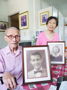 20代のころの写真を持つペーニャさん(左)と妻のジョセフィーナさん=7日正午ごろ、首都圏バレンスエラ市の自宅で写す