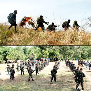 コマンドの奇襲訓練(上)。整列するモロ・イスラム解放戦線の兵士達