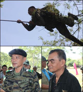 訓練する兵士(上)。ベース・コマンド総司令官アブドゥル・ワヒド・ドゥンドク(下左)。BIAF参謀モハンマド・ナシフ・アル・ハジ(下右)