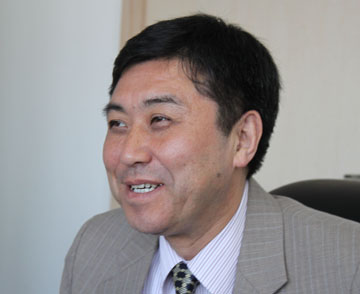インタビューに答える泉支店長=3日午前11時ごろ、全日空マニラ支店で写す