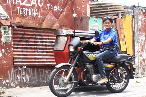 フィリピンの街を歩くと、いたるところでトライシクル(サイドカー付きオートバイ)を見かける。ドライバーの大半は男性だ。首都圏マカティ市で活躍する、マー...