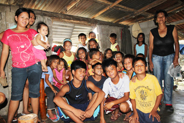 自宅で子供と孫に囲まれるセラさん(右端)=5月26日、ルソン地方パンガシナン州マンガルダン町で写す