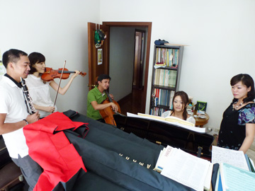 初公演を前に練習するマニラソリスティのメンバー=15日午後1時半ごろ、首都圏マカティ市内で写す