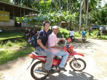昨年10月、パラワン島で発生したフィリピン国軍と反政府武装勢力モロ・イスラム解放戦線(MILF)の交戦現場を視察する落合直之さん=落合さん提供