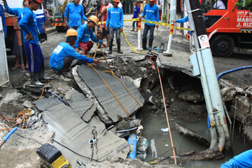 首都圏マニラ市サンタアナ地区のFロハス通りで26日午前5時半ごろ、地中に埋設された水道管が破裂し、付近の一部民家が床上浸水した。マニラ水道会社による...