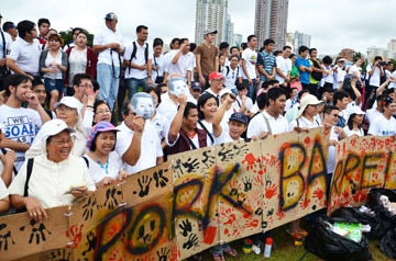 汚職の温床とされる優先開発補助金(PDAF)など、「ポークバレル」と呼ばれる裁量的予算の全廃を求める集会が26日、首都圏マニラ市リサール公園であった...