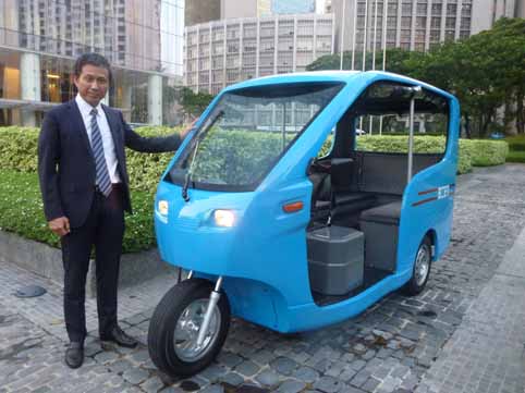 日系電気自動車ベンチャー企業、ビート・フィリピン(本社・首都圏マカティ市)は7日午後、同市で記者会見を開き、開発した電動トライシクル(サイドカー付きオートバイ)を公開した。開発に当たり、同社は日系企業で初めて運輸通信省陸運局(LTO)の認可を得て、電気自動車専用のナンバープレートを取得。アジア開発銀行(ADB)とエネルギー省が共同で進める電動トライシクル普及事業で、ADBが実施する競争入札を勝ち抜き、受注を狙う。