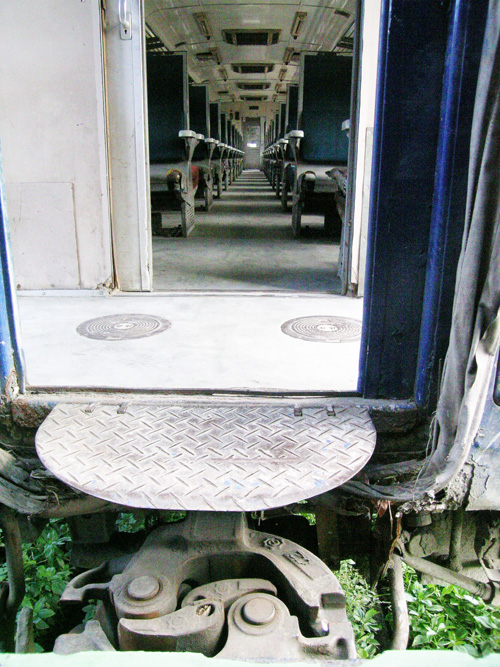 約15年前、JR東日本から贈与された中古客車は、10年もたたない間にぼろぼろになり、連結器の上をまたいで渡らなければならない場所も