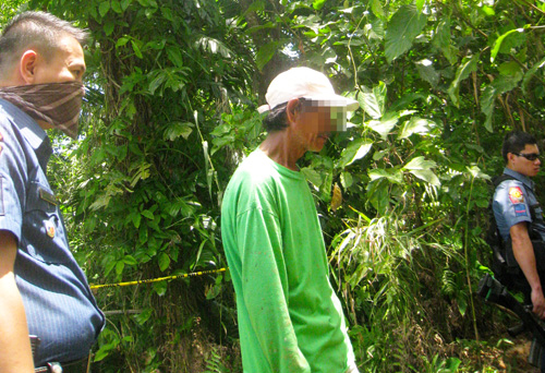 7月2日、インファンタ署の遺棄現場捜索に立ち会う住民(中央)。前夜、2遺体を現場から掘り起こし海に遺棄していた=同署提供