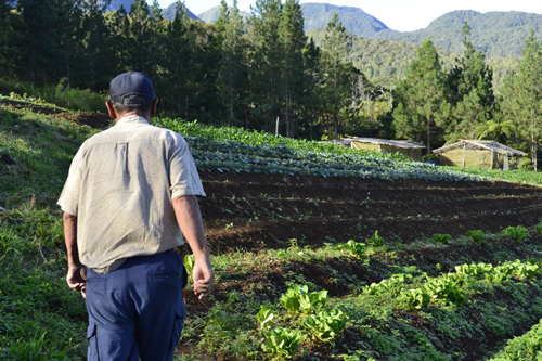ミンダナオ地方ブキドノン州マノロホルテージ町の山奥にある農場を歩くAさん=加藤昌平写す