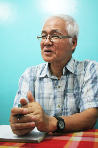 インタビューに答える石川雅国さん=首都圏ケソン市のアクセス事務所で冨田すみれ子撮影