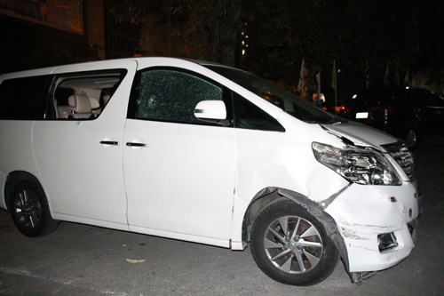 殺害事件発生時に水野さんらが乗車していたバン型乗用車=4月21日午前2時ごろ、マニラ市で冨田すみれ子撮影
