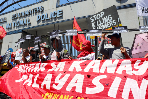 労組連合「5月1日運動」など左派系の団体・政党は2日、首都圏ケソン市の国家警察本部前で、東ネグロス州の14人殺害事件に抗議する集会を開いた。