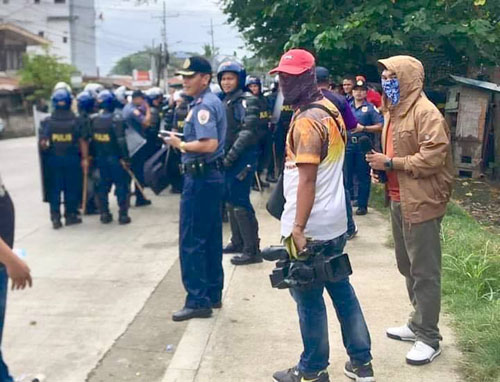 ミンダナオ地方ダバオ市のフィリピン・キリスト教団(UCCP)ハランを取り巻く警察官ら=25日、カレッジ・エディターズ・ギルド・オブ・ザ・フィリピンズ提供
