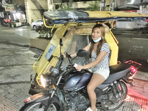 首都圏マニラ市マラテ地区で深夜に見かけた珍しい女性トライシクルドライバーのアマリア・デラルメンテさん(31)。元々バイクで資材などを運ぶ仕事をしてい...