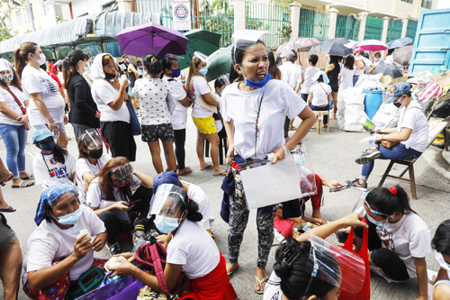 コロナ禍に苦しむ全国の低所得者約1800万人に対する政府の支援金給付が始まって8カ月余り。ケソン市バゴンシランガンでは26日、支給を受ける住民らが路...