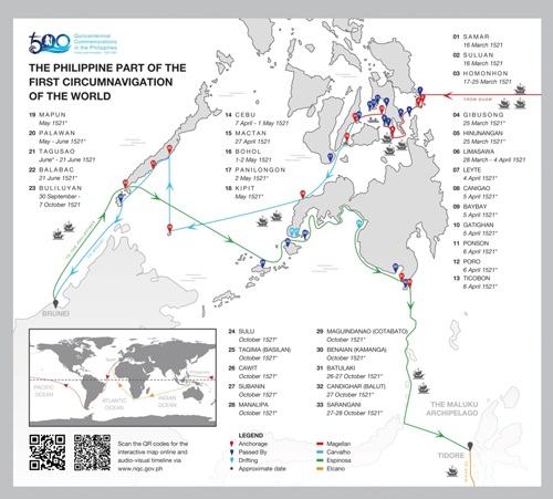 マゼラン船団の航跡地図(比マゼラン来島500年記念祭の公式サイトから)
