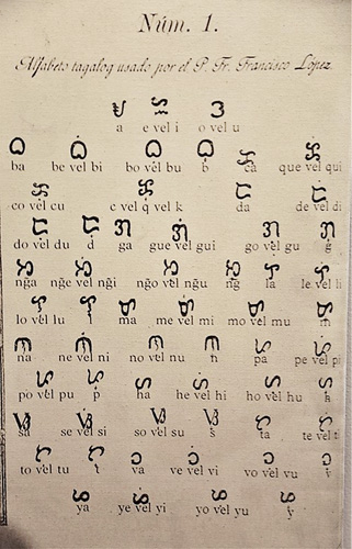 バイバイン文字とアルファベットの対照表=フィリピン国立博物館所蔵、石山永一郎撮影