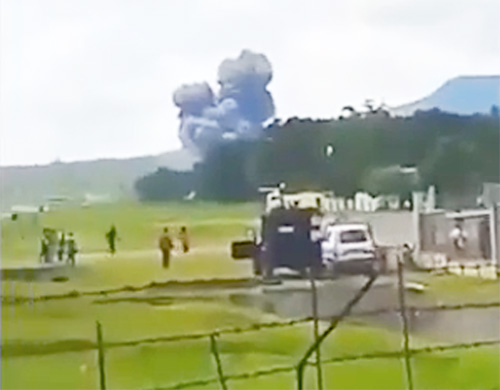 墜落して炎上した国軍輸送機から上がる煙=リカルド・ダリサイ氏提供の映像から