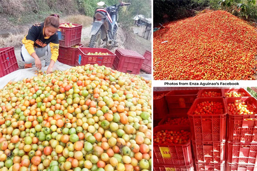 農務省コルディリエラ行政区事務所がイフガオ州ティノック市の売れ残ったトマトを調査した際の写真=9月28日の農務省通信、同省ホームページより