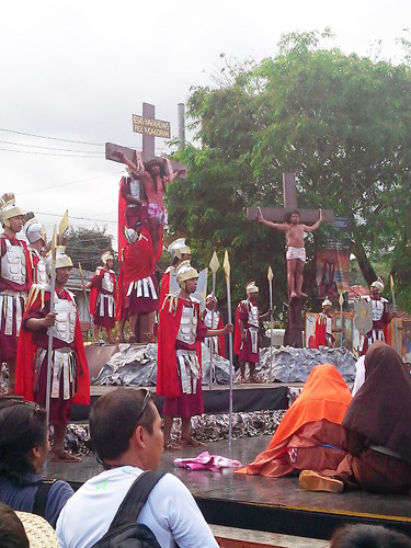 コロナ禍前にはセブ市内でもキリストの受難を追体験するはりつけ再現劇などが行われていた=2015年4月、麻生雍一郎氏撮影