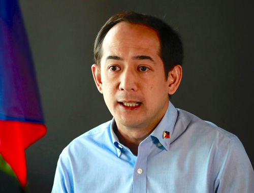 ボンボン・マルコス候補の報道担当者ビック・ロドリゲス弁護士=13日、首都圏マンダルーヨン市(EPA=時事)