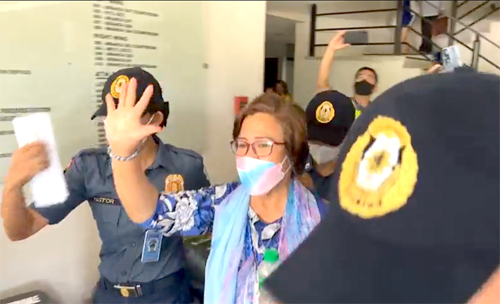 モンテンルパ地方裁判所に出廷し、収監先であるケソン市の国家警察本部に向かうレイラ・デリマ上院議員=13日、首都圏モンテンルパ市で(デリマ議員のフェイスブック映像から)