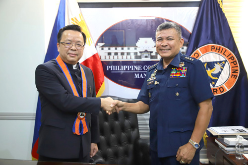 沿岸警備隊アブ長官と面会する黄渓連駐比中国大使=2日、沿岸警備隊公式フェイスブックより