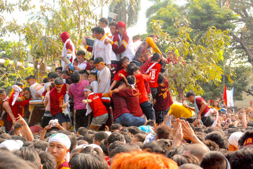 ブラックナザレ像の市内巡行=2019年1月9日、首都圏マニラ市で岡田薫撮影