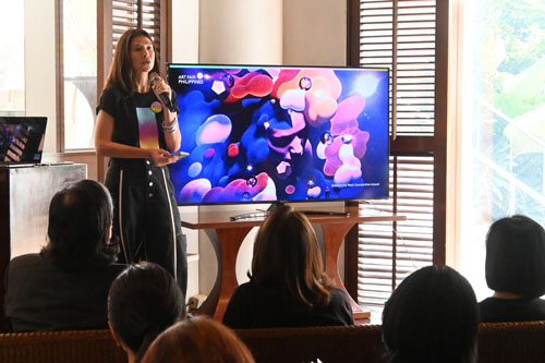 セクションの紹介をする共同創立者のトリッキー・ロパさん=1月24日、首都圏マカティ市のラッフルズホテルで深田莉映撮影