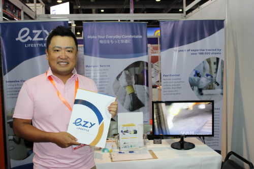 比展示会「WORLDBEX」に出展していたおまかせライフスタイルの矢崎勇人社長=18日、首都圏パサイ市で沼田康平撮影
