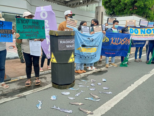 在フィリピン日本国大使館前で13日、沿岸地域の比住民や活動家らが福島原発から100万トン以上の処理水を海洋放出する計画の中止を求める抗議活動が行われ...