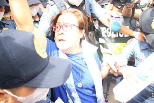 無罪判決を受け、モンテンルパ地裁を出るレイラ・デリマ被告=首都圏モンテンルパ市の同地裁前でエリック・アシドレ撮影