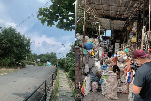 5月8日にオープンしたパヤタスの公園(左)/公園のすぐ近くには依然としてゴミ集積場がある(右)