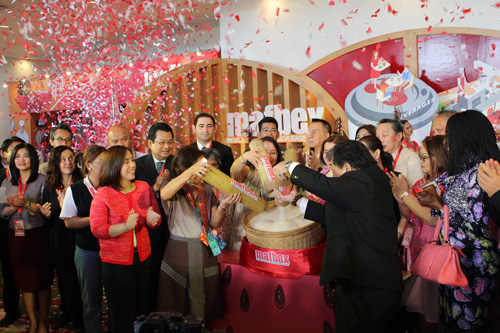 展示会「マニラ・フーズ・アンド・ベバレジズ(MAFBEX)」の開会式=14日、首都圏パサイ市で沼田康平が撮影