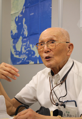 戦争中の経験を話す坂上多計二さん=16日、東京・浅草公会堂で冨田すみれ子撮影
