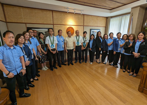 ロセラー・リサール市長らカランバ市役所職員と記念撮影する五條市の職員ら=2日、ラグナ州カランバ市(五條市提供)