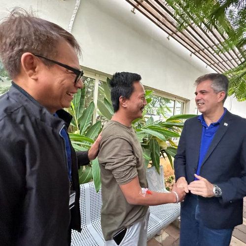 ライロ駐イスラエル比国大使(左)と共にイスラエルのコーヘン外相と面会したパチェコさん(中央)=26日、在イスラエル比国大使館が公開