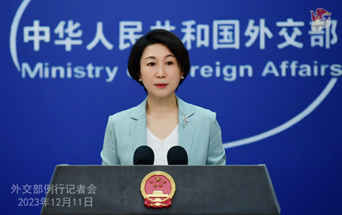 定例記者会見を行う毛寧報道官報道官=11日、中国外務省