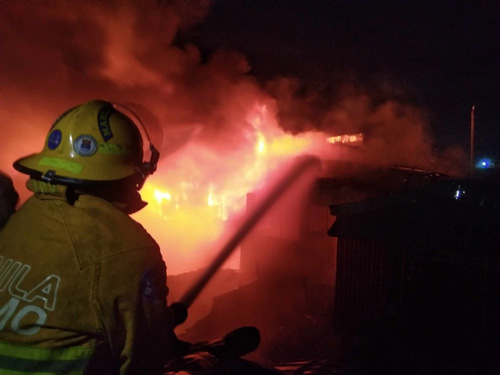 トンドの火災で放水する消防士=マニラ市災害対策事務所フェイスブックページより