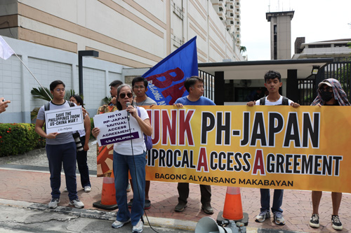 フィリピンと日本両政府の間で訪問部隊の法的地位を定める部隊間協力円滑協定(RAA)が署名された8日、首都圏パサイ市の日本大使館前で、80年以上前の日...