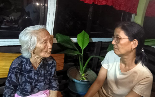 多くの日系人が暮らすミンダナオ島最南端の町、西ダバオ州ホセアバドサントス町。同町海辺の地区カブランスモールにはマラモト(マルモト)姓を持つ家族が暮らす。8人の大家族が暮らす海辺の家の2階で迎えてくれたのは、残留日本人2世パシータ・マラモト・トレスさん(92)だ。先月中旬、NPOフィリピン日系人リーガルサポートセンター(PNLSC)の猪俣典弘代表や日本ボランティアらが訪問すると、日本人の同胞が来たと目を細めた。(竹下友章)
