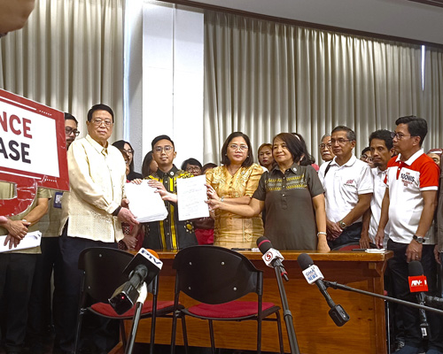 首都圏ケソン市の下院で4日、市民団体代表ら74人がサラ副大統領の弾劾を求める告発状を下院事務局に提出した。告発人には、左派系市民団体連合バヤンの代表レナト・レイエス氏、バヤン名誉代表で次期上院選に立候補表明しているテオドロ・カシニョ氏、労働運動団体のKMU(五月一日運動)の事務局長で上院選に立候補しているジョロメ・アドニス事務局長、教職員組合政党ACTティーチャーズのブラディメル・クエトゥア名誉代表、女性政党ガブリエラのエメレンシアナ・デジェスス名誉代表、フィリピン農民運動(KMP)のダニン・ラモス代表、ジャーナリストで戒厳令下で民族民主戦線を設立し、投獄された経験のあるサトゥル・オカンポ氏など、市民社会活動をけん引してきた面々が名を連ねた。