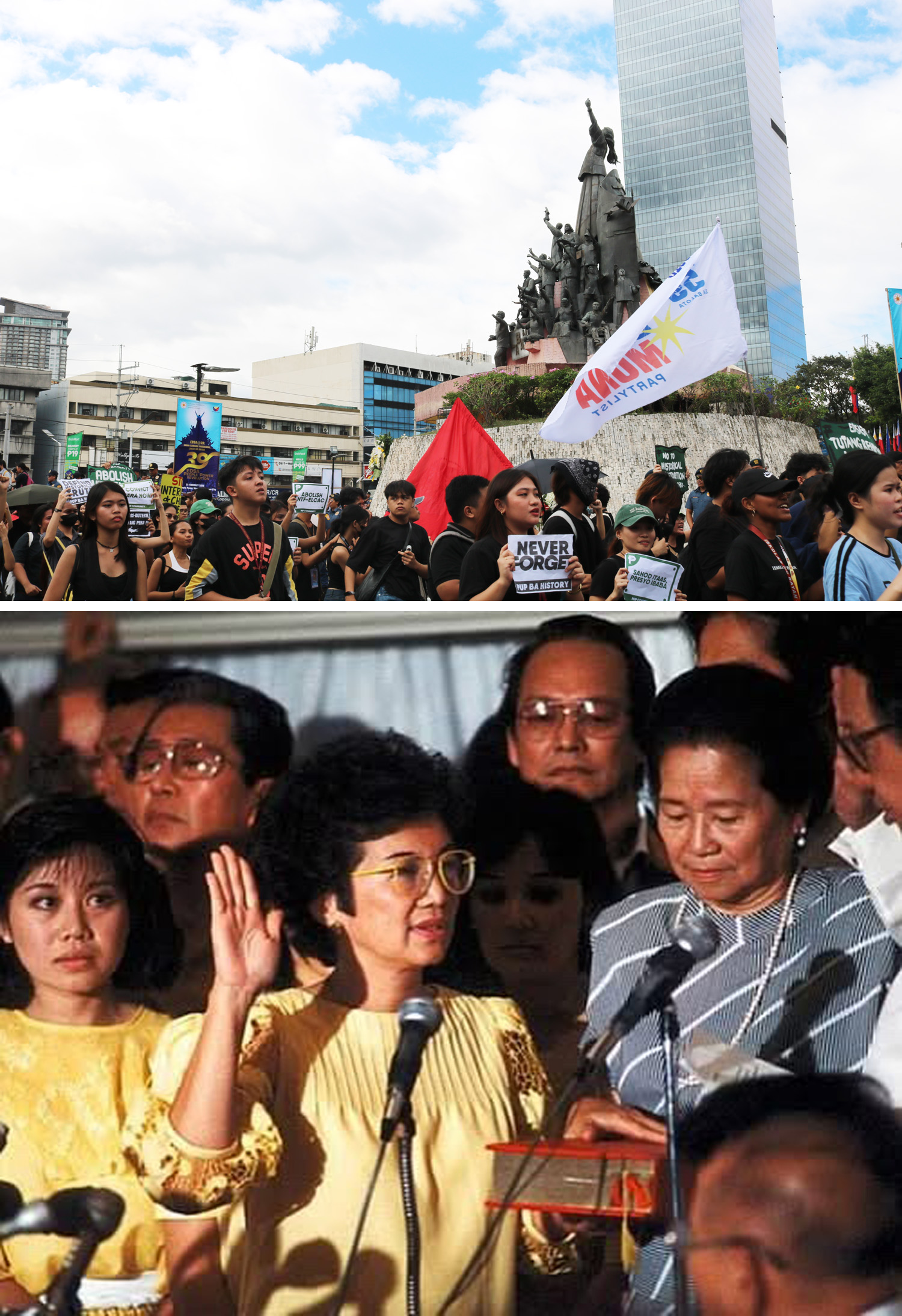 エドサ革命は現代史で、開発独裁政権が民衆により転覆した日として記録されているが、マルコス家にとっては、自政権の正当性を裏付けるため打って出た大統領選で、中央選管による当選宣言を受けたもかかわらず、一家が国を追われた因縁の日だ(選挙監視団はコリー・アキノ氏の当確を発表していた)。マルコス大統領就任後初のエドサ革命記念日は週末と重なることを理由に1日前にずらされ、昨年のエドサ記念日は同じ理由で休日の特別非労働日から除外され、今年は平日だったにもかかわらず「特別労働日」として、休日から外された。
