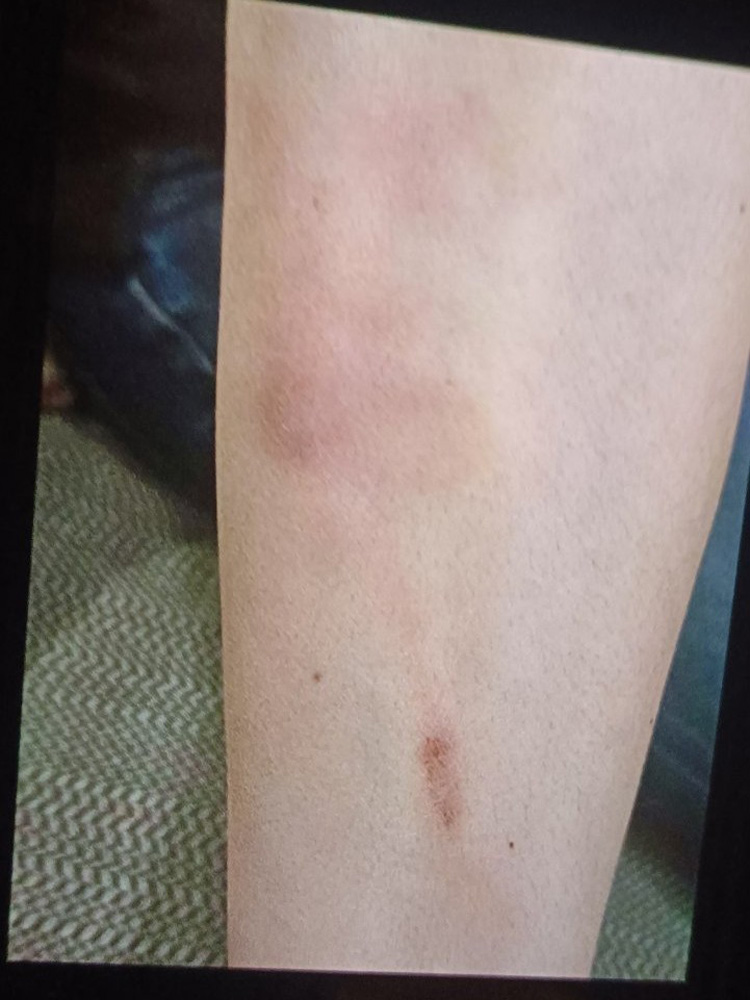 邦人男性が銃弾がかすめた痕と報告しているという擦過傷