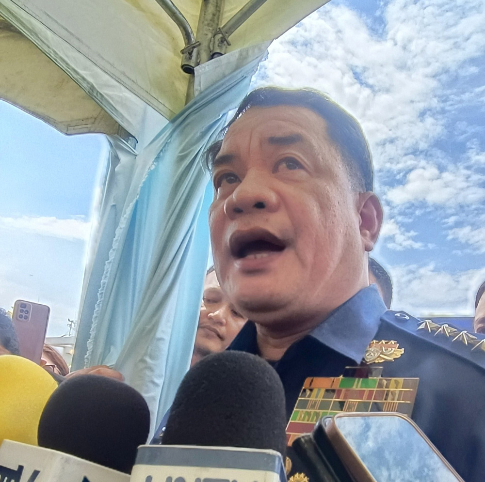 メディアの囲み取材に応じるPCGガバン長官=大型巡視船ガブリエラ・シラン船上で竹下友章撮影