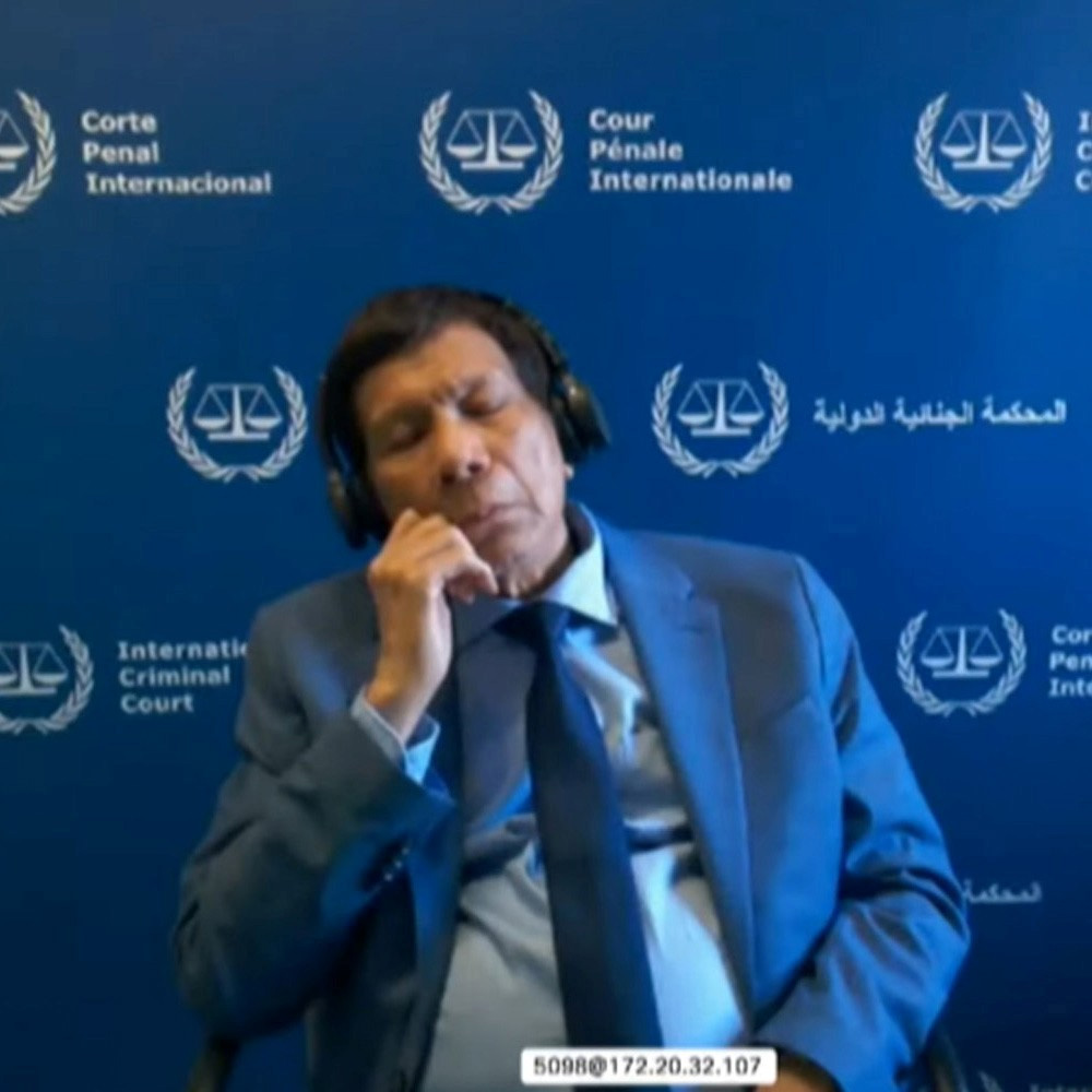 オンラインで国際刑事裁判所の公判前手続きに出廷したドゥテルテ氏=3月
